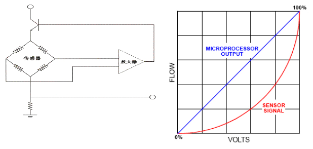 對加熱探頭的(de)總能量供應正比(bǐ)于氣體質量流量(liàng),微處理器輸出線(xiàn)性信号。