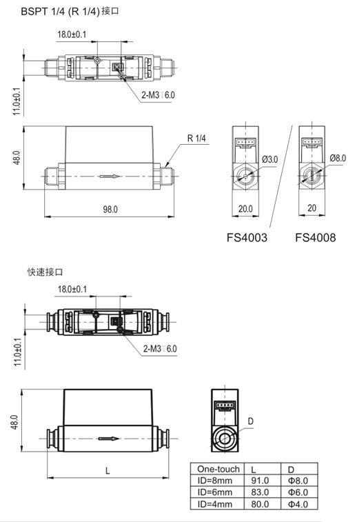 BSPT1/4(R1/4),4mm/6mm/8mm快速接(jiē)頭 |