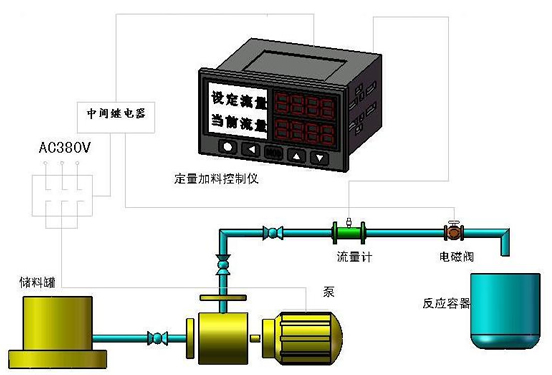 定量控制儀(yi)通過電磁閥進(jin)行控制的接線(xian)示意圖